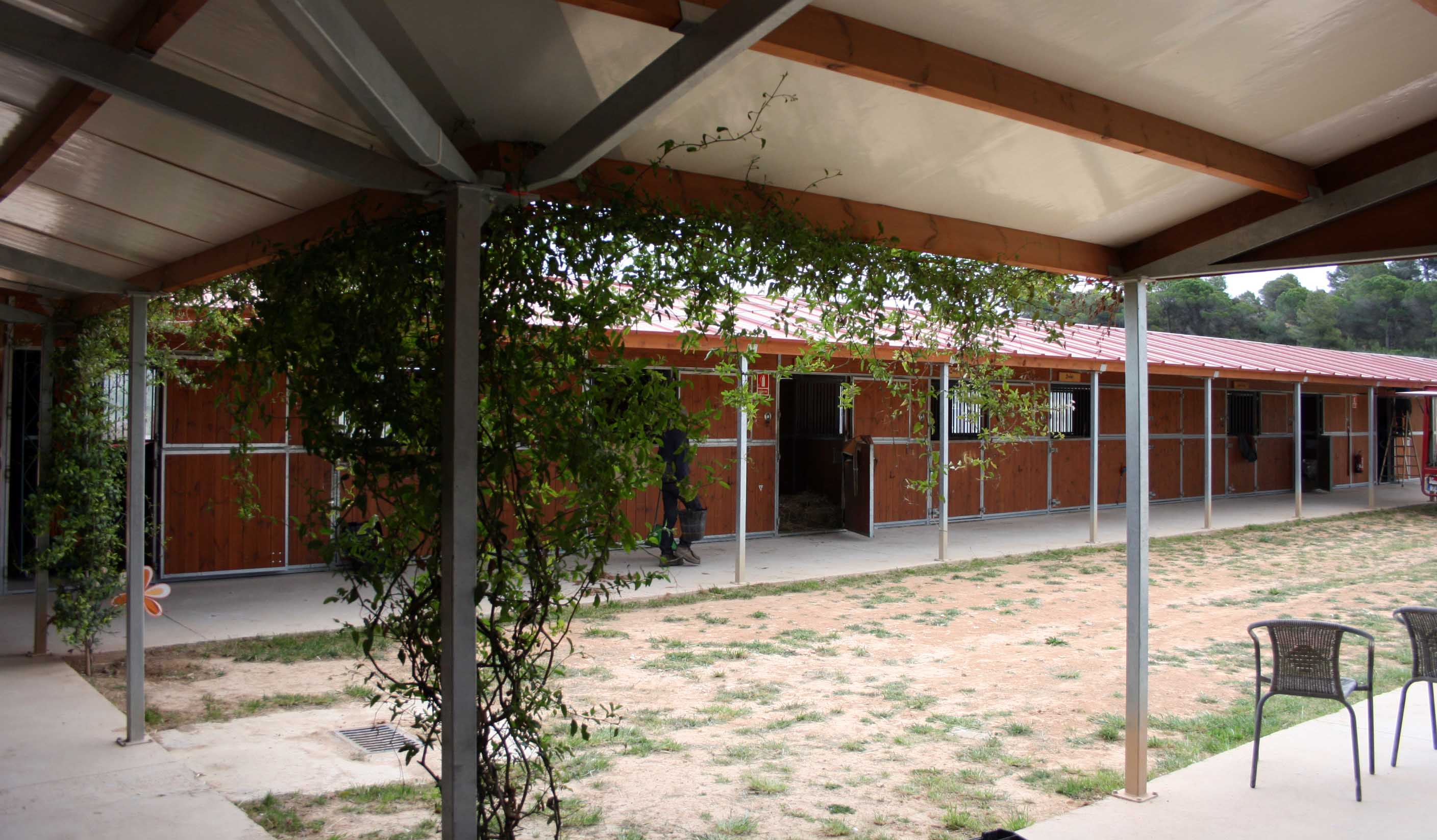 - Teulada amb voladís de 3m que protegeix el cavall de la pluja i el sol de l’estiu.