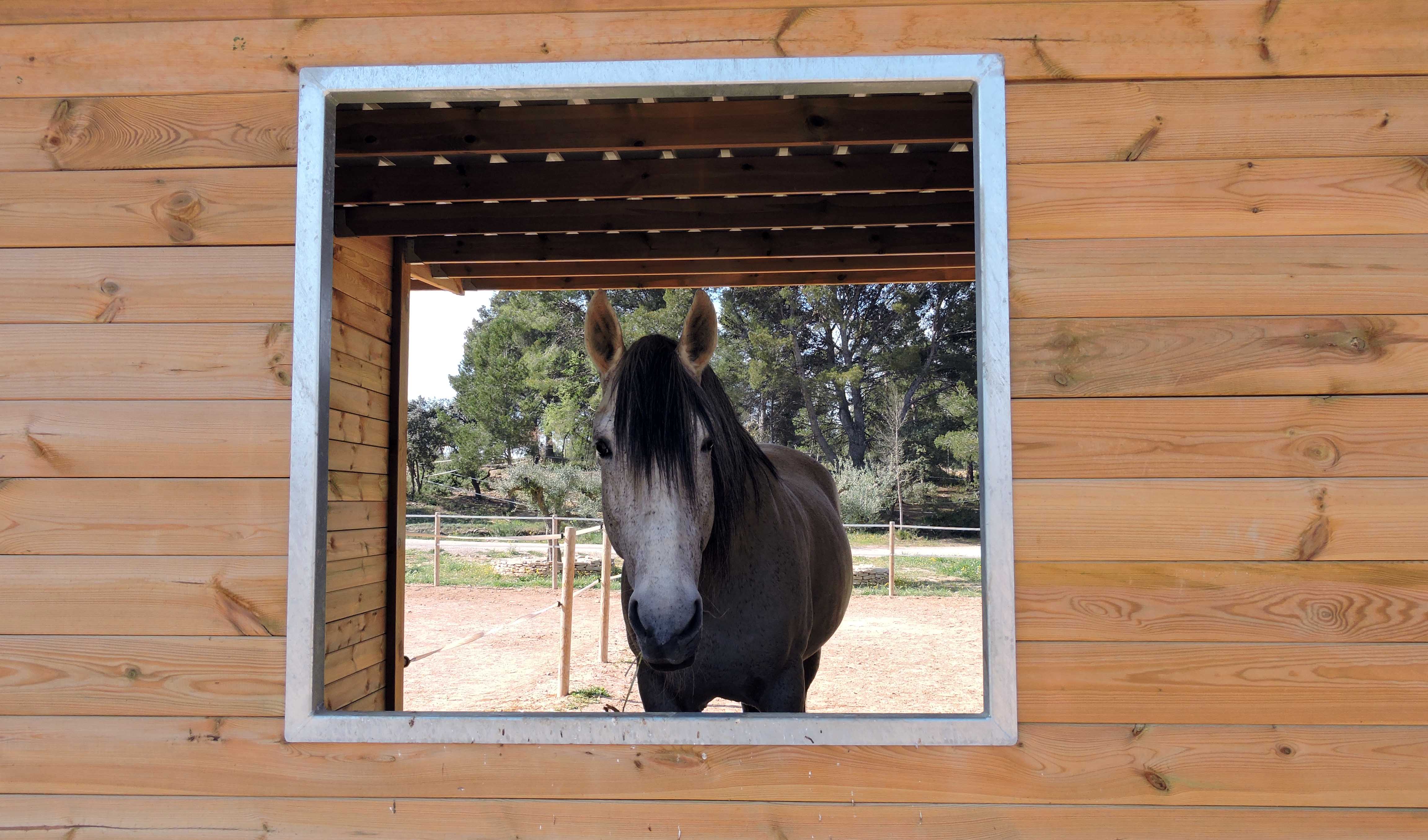 - Finestres davant i darrera de 90x100cm. Permeten que el cavall vegi l’exterior i els altres cavalls.